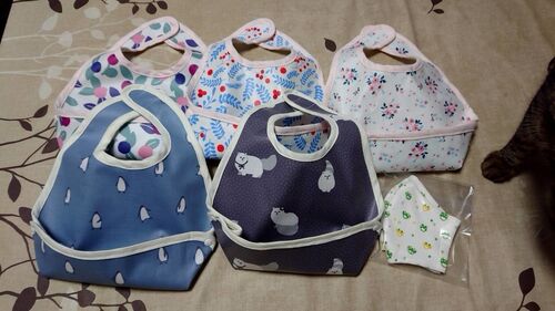 孫の保育園で使うお食事エプロンが黒ずんで傷んできたので新しいのを作って欲しいと娘から 早速ラミネートの残り生地で作っていると父さんはそれは母親の仕事だ、自分で作らせろという ごもっともですが、勤めで忙しいママに代わって作ったっていいじゃない…