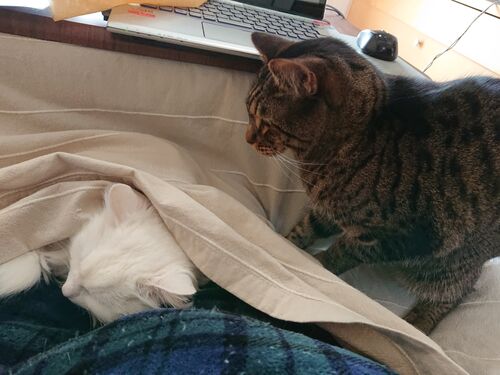 我が家の猫 チャメとチロ 仲がいいんだか悪いんだかよく猫団子に重なっているニャンコたちをみると仲むつまじくてかわいいなぁと羨ましくさえ思っていました我が家はチロは父さんにチャメは母さんにベッタリすることが多くチャメとチロだけでベッタリなんて…