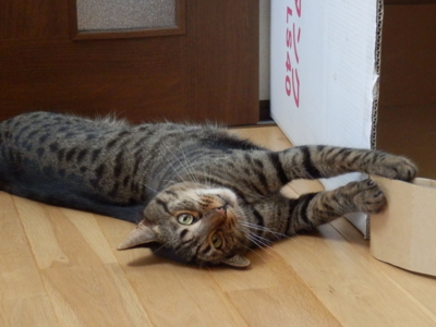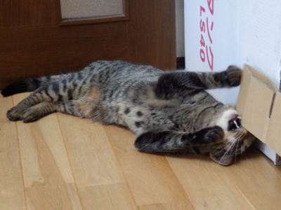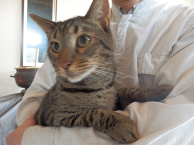 2014-10-09 荒れてます 噴いたぁ〜 あのお坊ちゃま君が・・・ 噴くっていうことを知らないと思っていたビビり君が・・・ 車庫のケージの中のチロにチャメを抱っこしてご対面 初め覗き込むように見つめていたのに いきなりフギャァ〜〜〜〜〜 パパさんの腕の中で暴れだしたので慌てて家の中に 爪を残し毛をまき散らして一気に2階へ 何か虫の居所が悪く嫌な感じがしたのかな あんなに暴れたのは初めてです こちらがびっくりしました まだまだ落ち着きません ぱぱさんにガブリ! 八つ当たり? 大丈夫、チャメが1番だから、ね