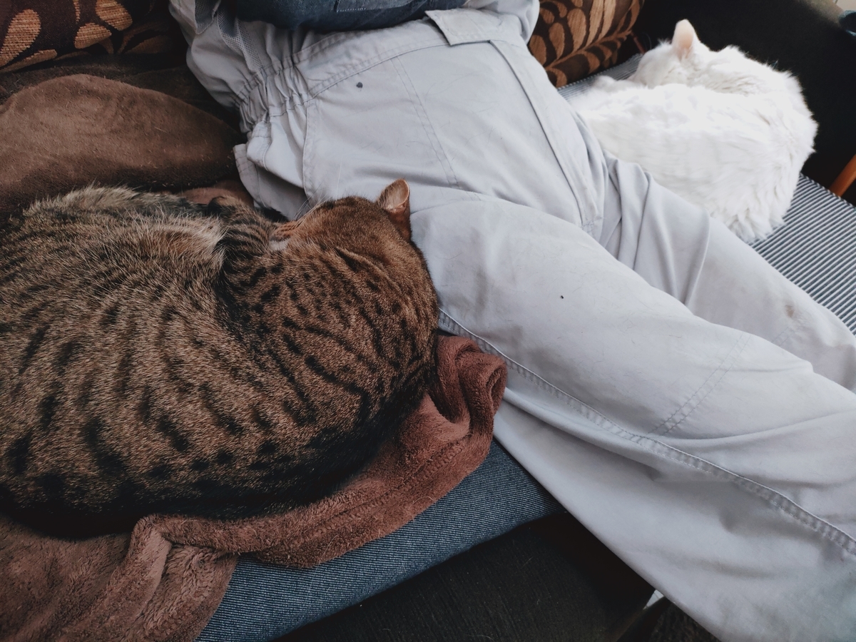 なかなか気温が上がらず人肌恋しいようで父さんにベッタリのチャメとチロ