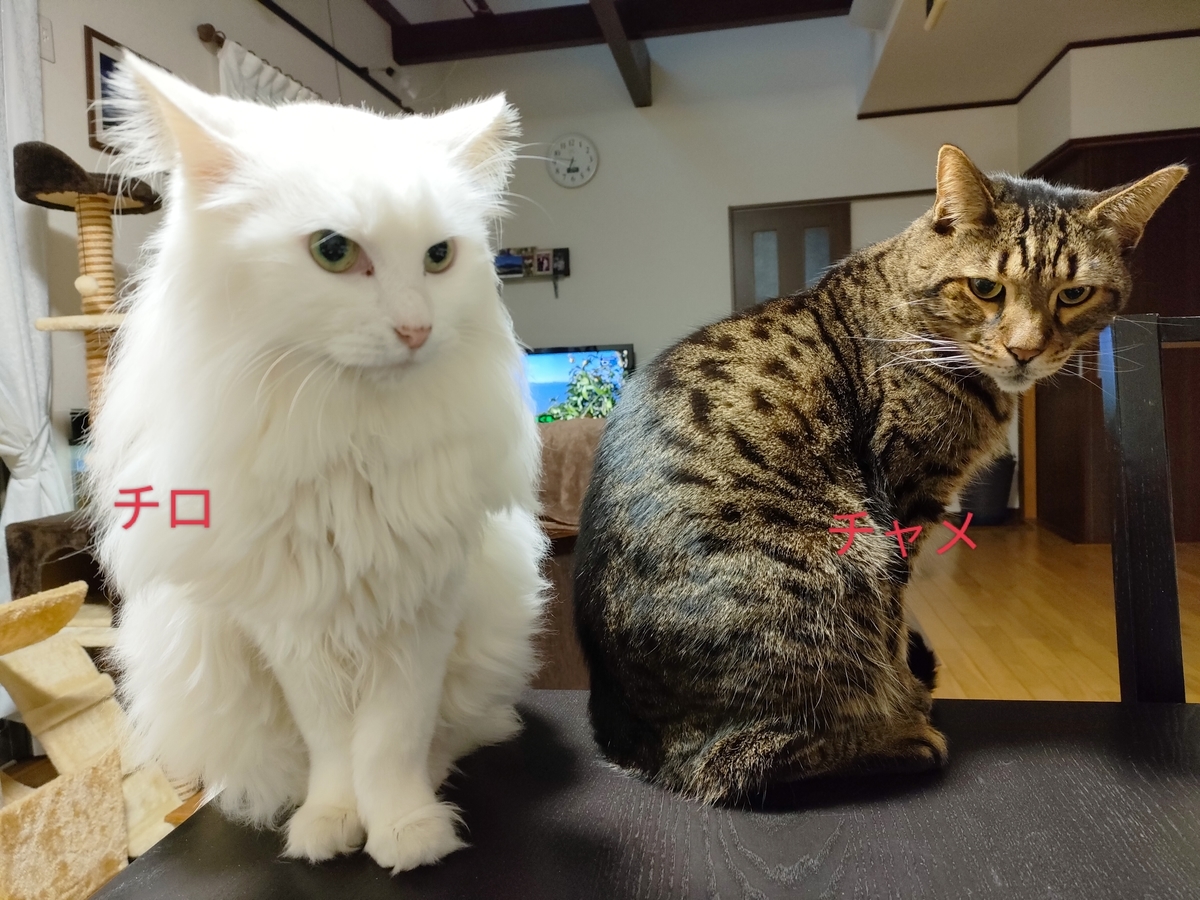 朝ご飯に鮭を焼いたら二人してテーブルに