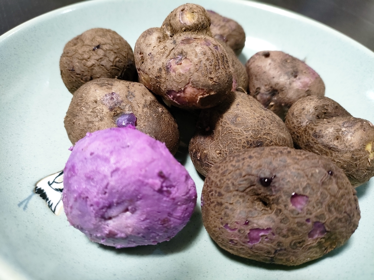 紫山芋のむかごは握りこぶしほどの大きなものですので前回は天ぷらにしたものをいただきました