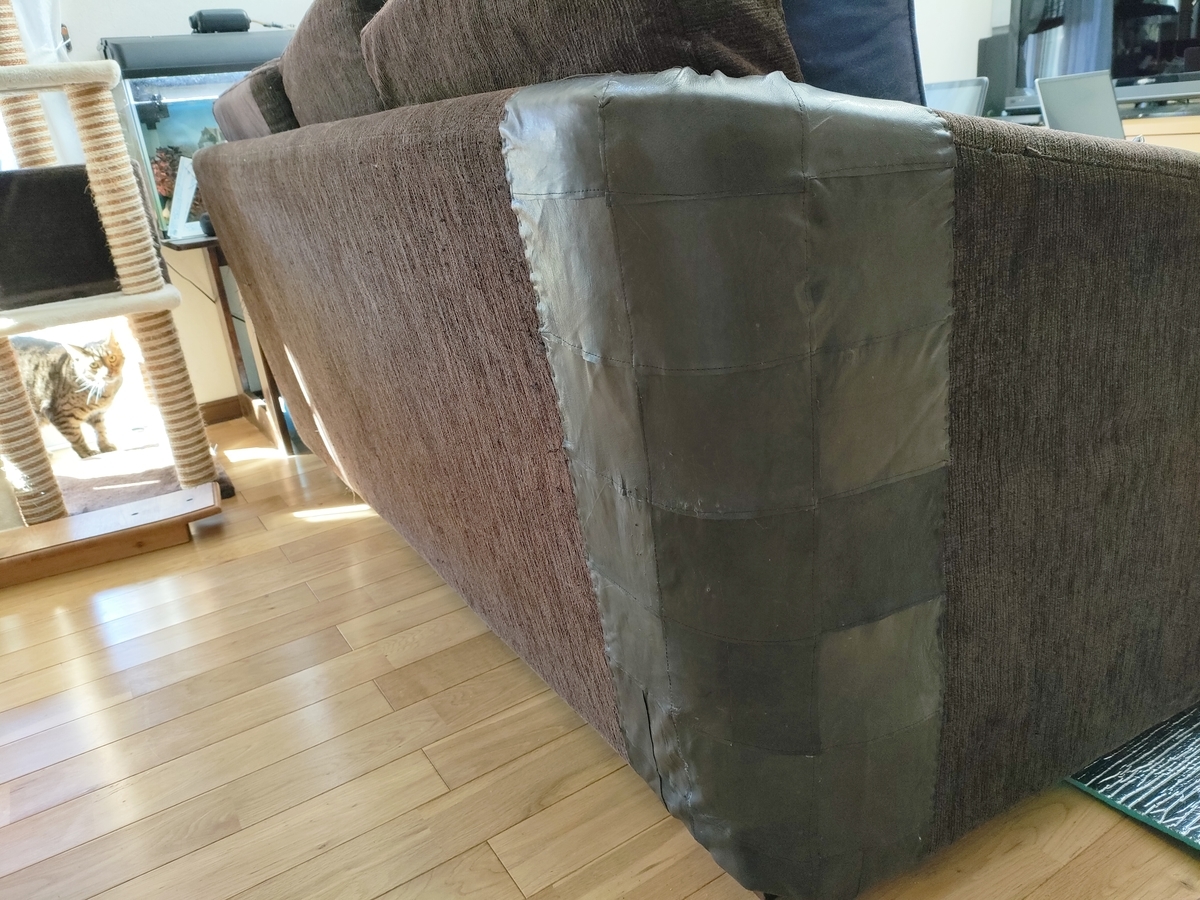 全体にカバーをかければいいのでしょうが、皮のハギレがありこれを使えないかと