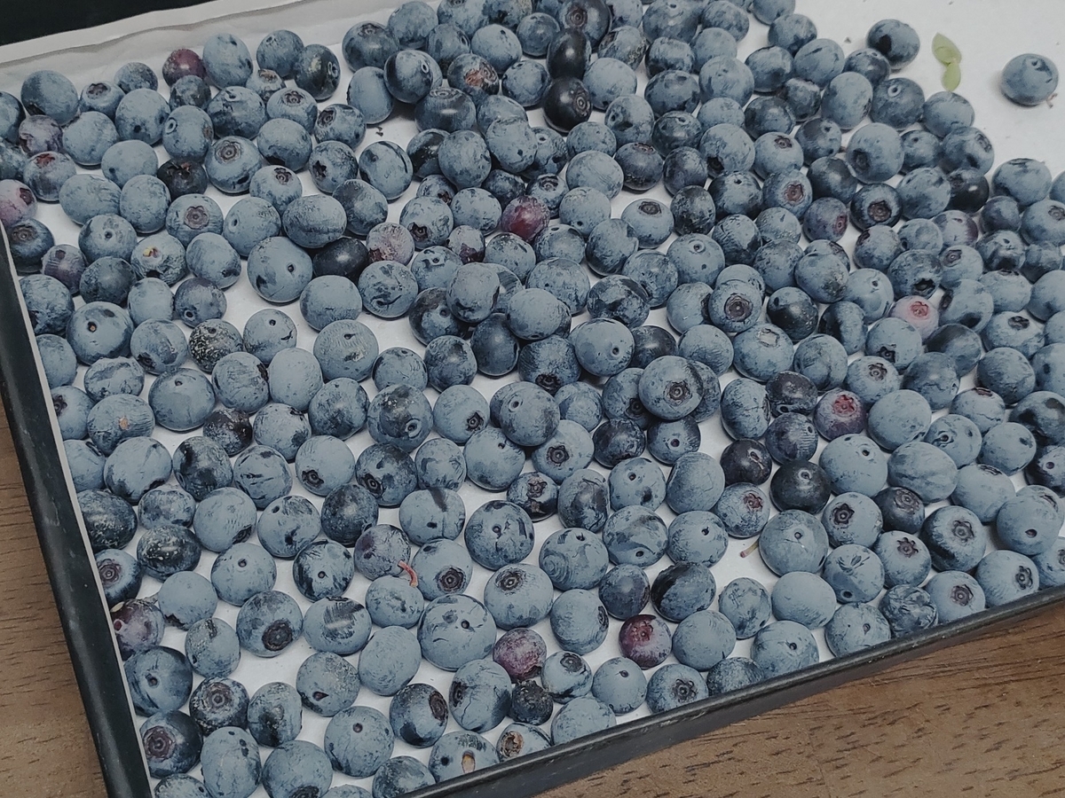 孫たちが収穫したブルーベリーは顔がキュッとなるほど酸味が強かったですが、今回のは甘みが乗ってきてそのままでもパクパク食べられます