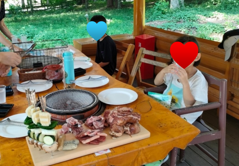 お昼ごはんは屋外炭火焼BBQガーデンで