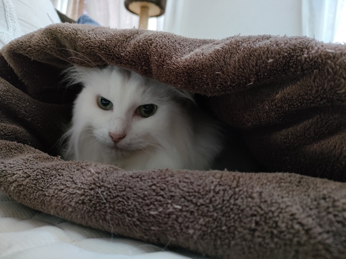 2023-10-09 べったり 今日は11月中旬並みの気候で、最高気温が20℃未満となるのは5月23日以来、実に約4か月半ぶりだそうです 上着が必要な肌寒い一日となりました 我が家のニャンズも肌寒くなると毛布から離れません チロは毛布の中にもぐり、チャメは側にべったり ソファに座ると甘えてきます 夜ももちろん私たちの布団に 上に乗って寝ていたのが 布団の中に入れて〜とツンツン タオルケットに薄手のダウンケットだったのですが今夜から毛布に変えましょう 一緒に寝ようね
