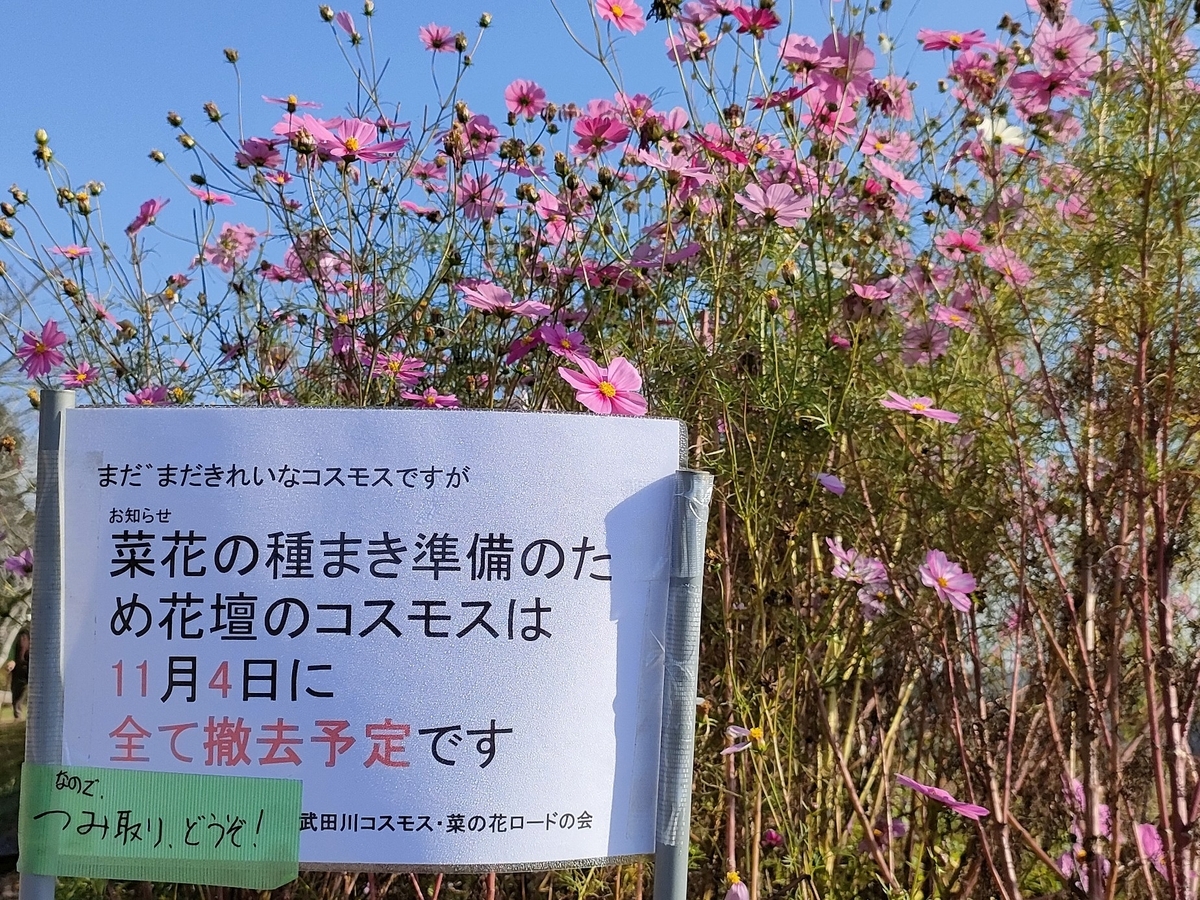 コスモスも終わり、11/4には撤去されるようでつみ取り自由とありましたので少しいただいてきました