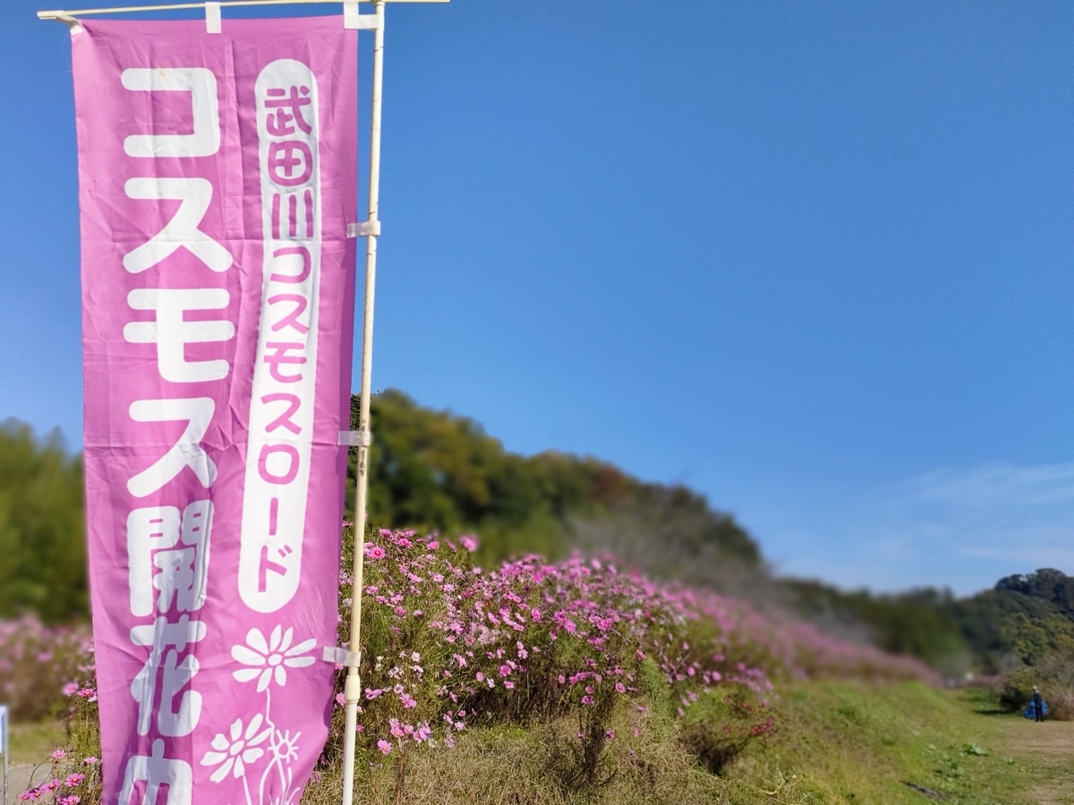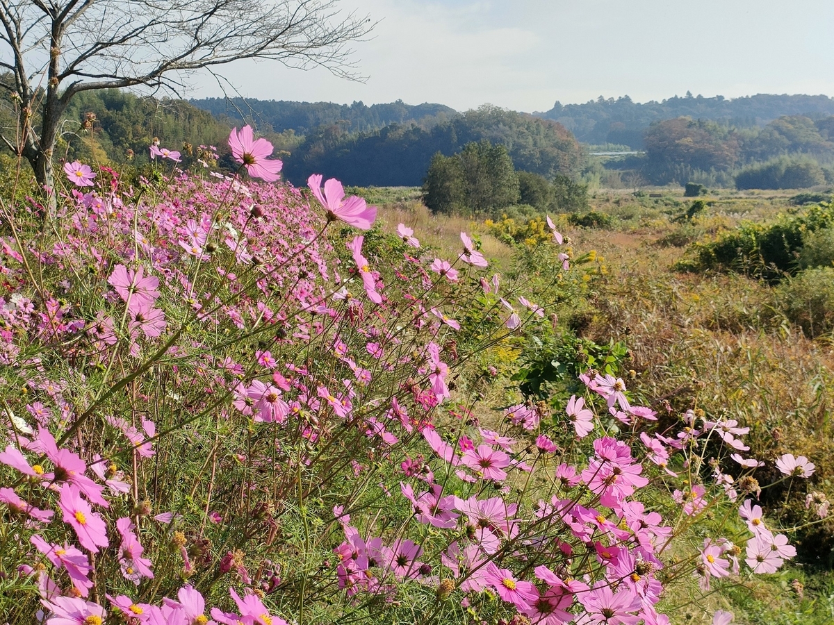 木更津のコスモスロードと検索すると出てくる「武田川コスモスロード(うまくたの路)」