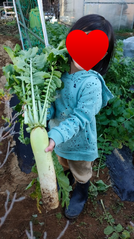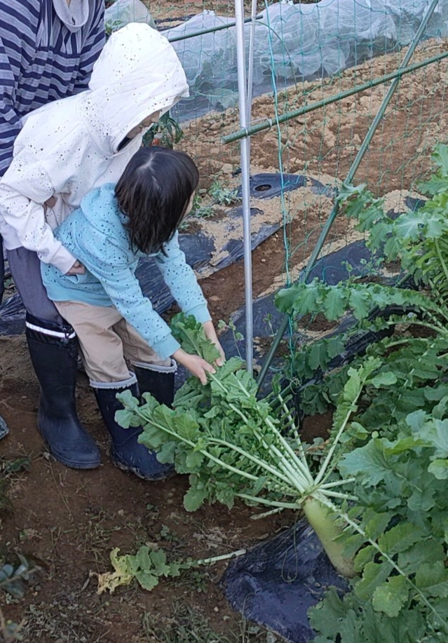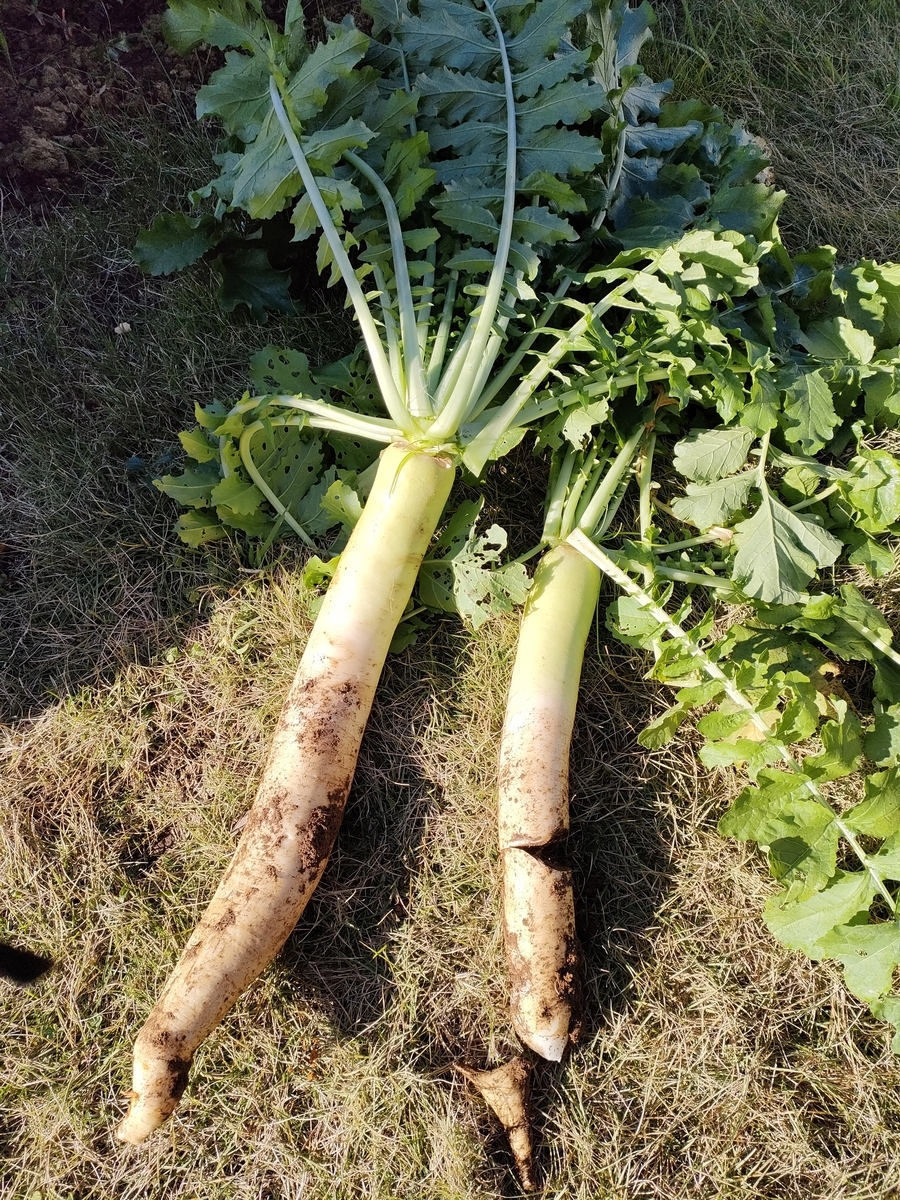 大根がまだ少し細いけれど一緒に大根掘りをしました