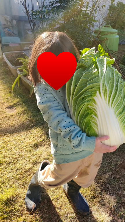 白菜を持っていくと大きいね、持ちた〜いと
