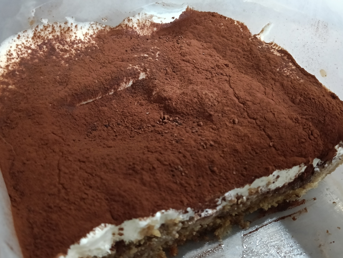 そのまま良さそうなところだけ切って渡そうかとも思いましたが、いっそ潰してしまえと切ってコーヒーに浸してティラミスにしました