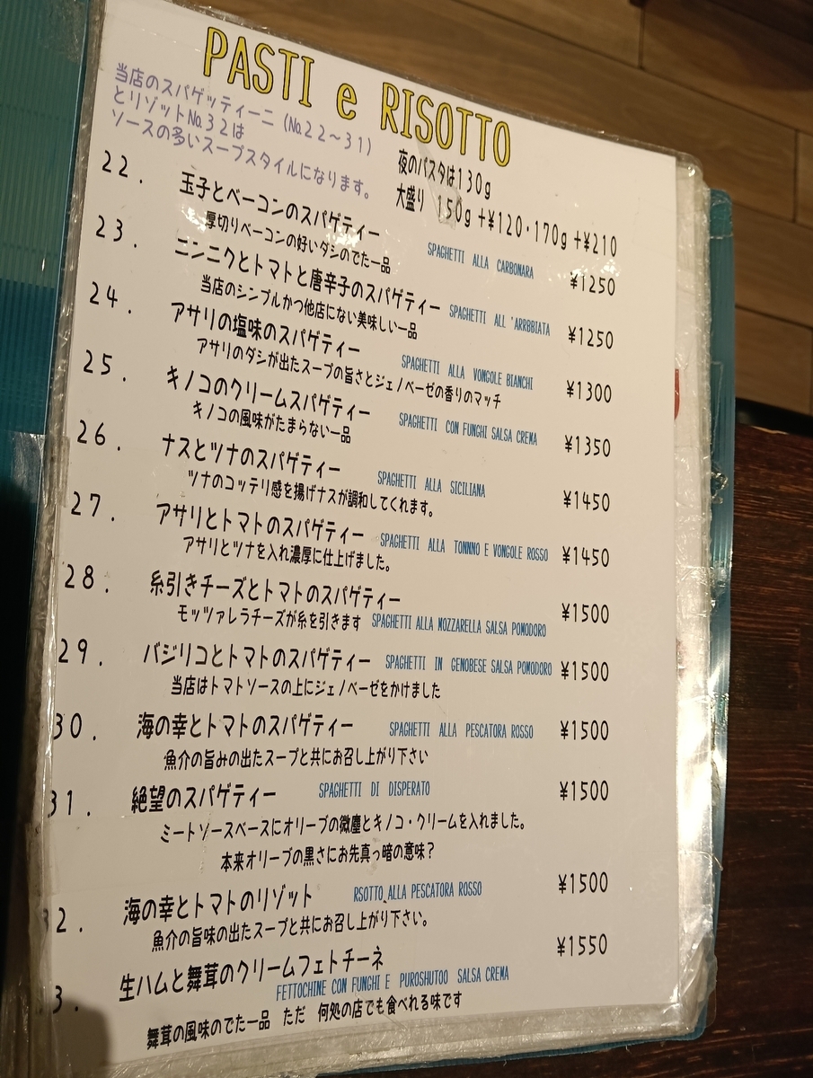 先日娘と出かけた時にnorikoさんご紹介の「絶望のパスタ」を食べたくっていってきました