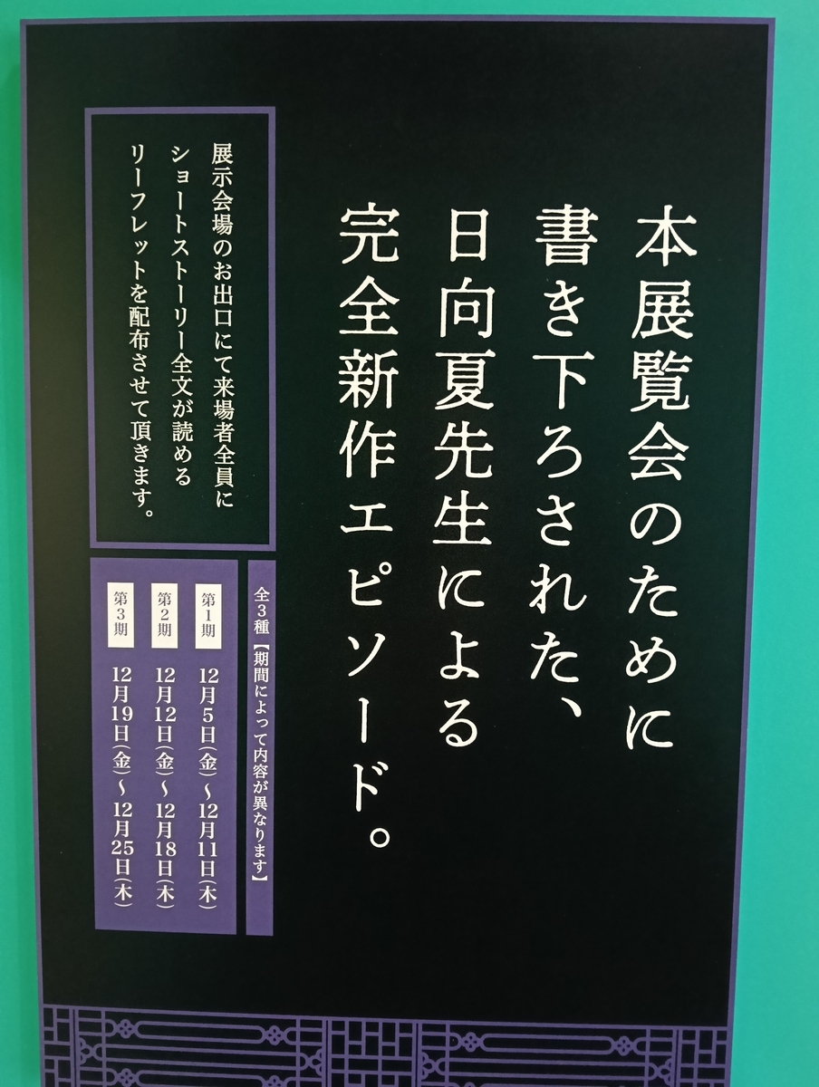 その小説の原作展があるというので、それも期間中 週変わりで原作者の完全書き下ろしショートストーリーのリーフレットがもらえるということで3週連続で娘と出かけました